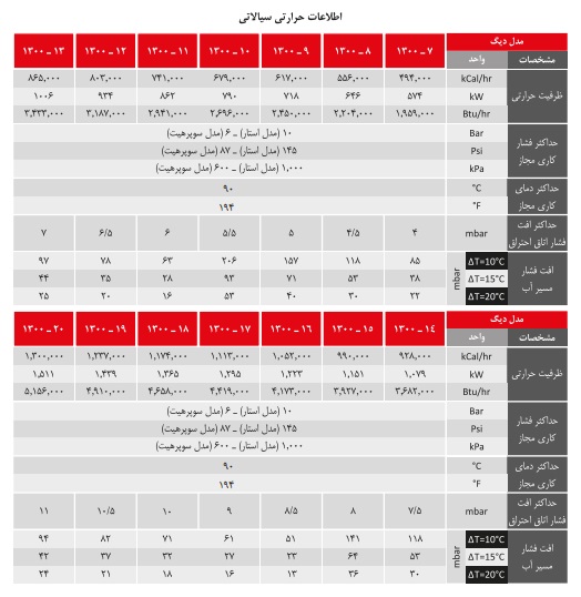 حداکثر فشار کاری سوپرهیت ۶ اتمسفر و مدل استار ۱۰ اتمسفر