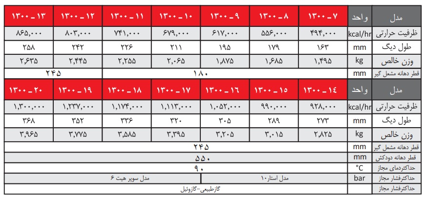 ظرفیت حجم آب موجود در دیگ از ۱۱۰ لیتر تا ۳۰۰ لیتر