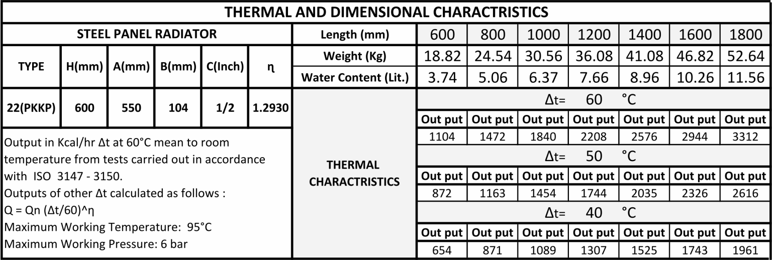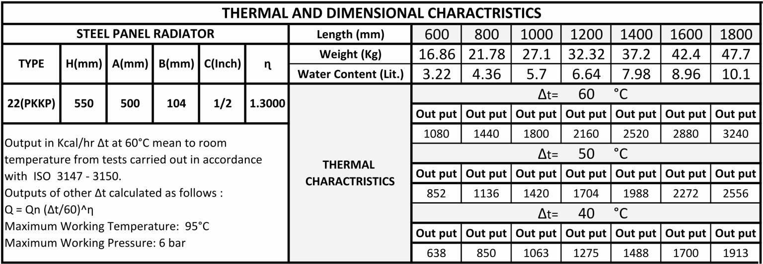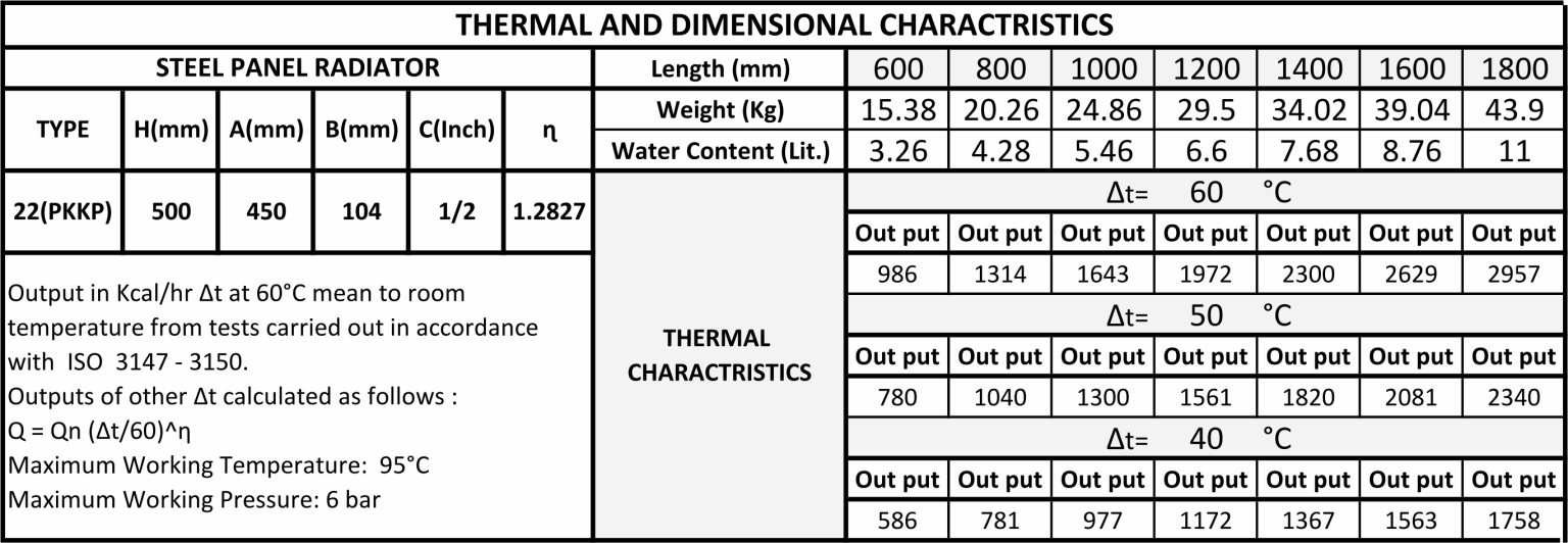 تایپ ۲۲ (Type 22): دو پنل موجدار به همراه دو ردیف پره (کنوکتور) در میان آنها. پر بازده ترین نوع در این دسته بندی است که بیشترین گرمایش را در کمترین فضا ارائه میدهد.